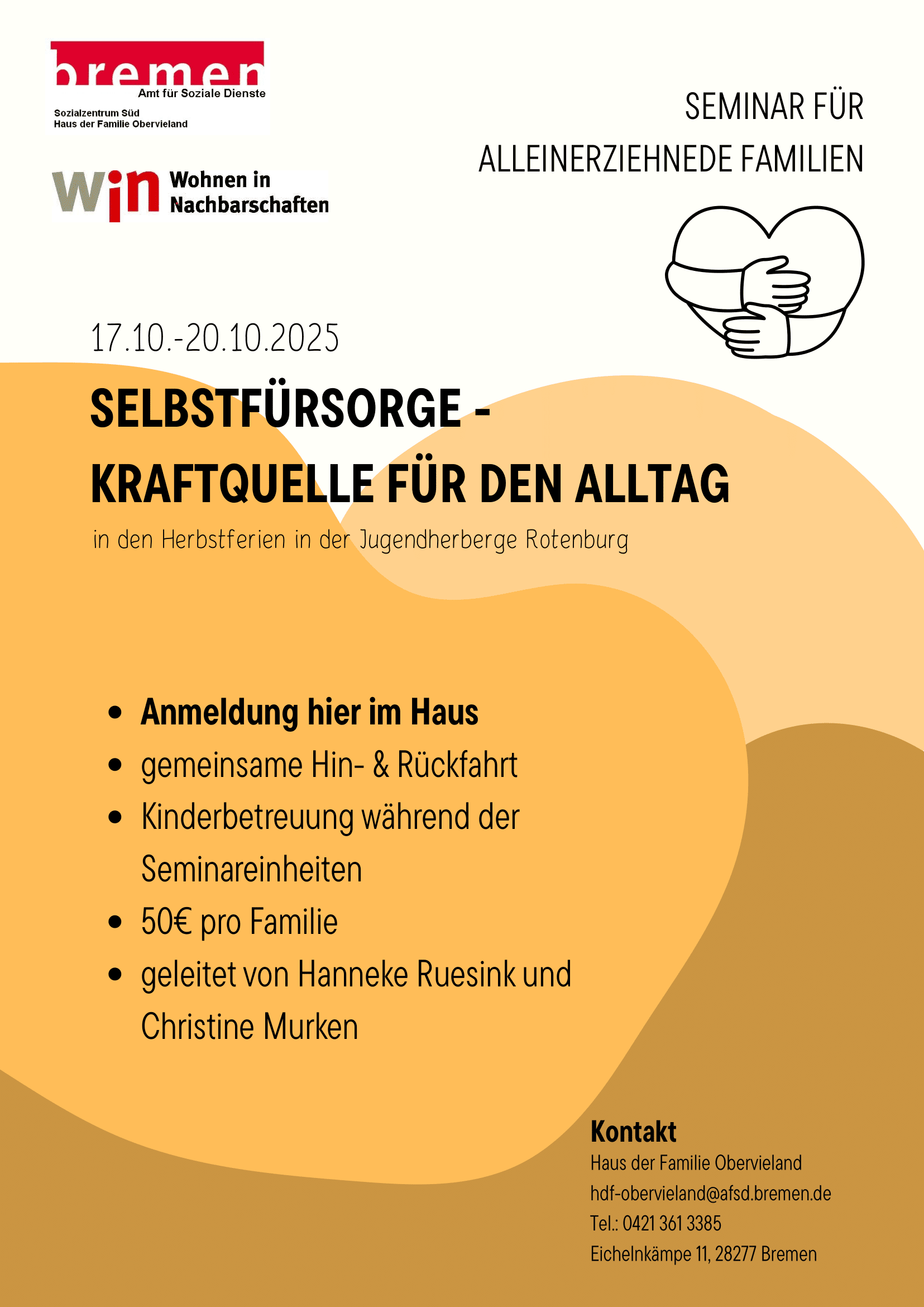 Haus der Familie Obervieland Eichelnkämpe 11, BremenIm Haus der Familie Obervieland findet jeden Montag von 9:30-11:00 Uhr ein Baby-Treff statt. Mütter mit ihren Säuglingen bis zum Alter von ca. 9 Monaten sind herzlich willkommen. Die Teilnahme an den Treffen ist kostenlos. Nur mir vorheriger Anmeldung!